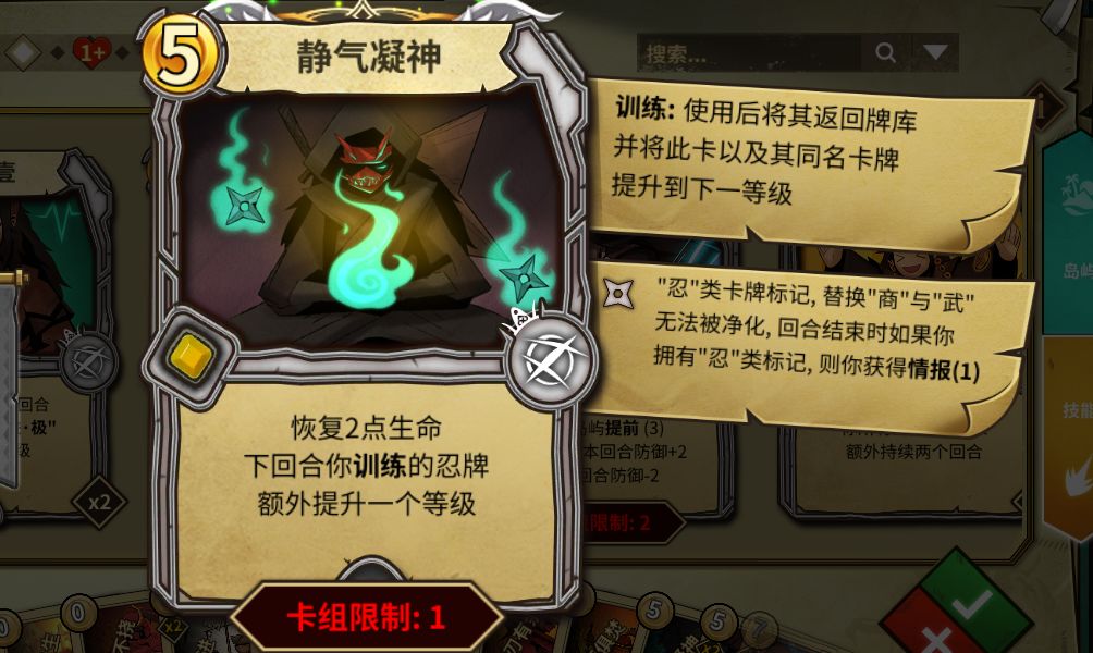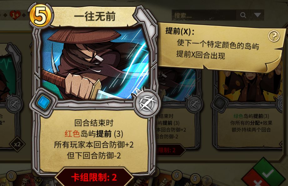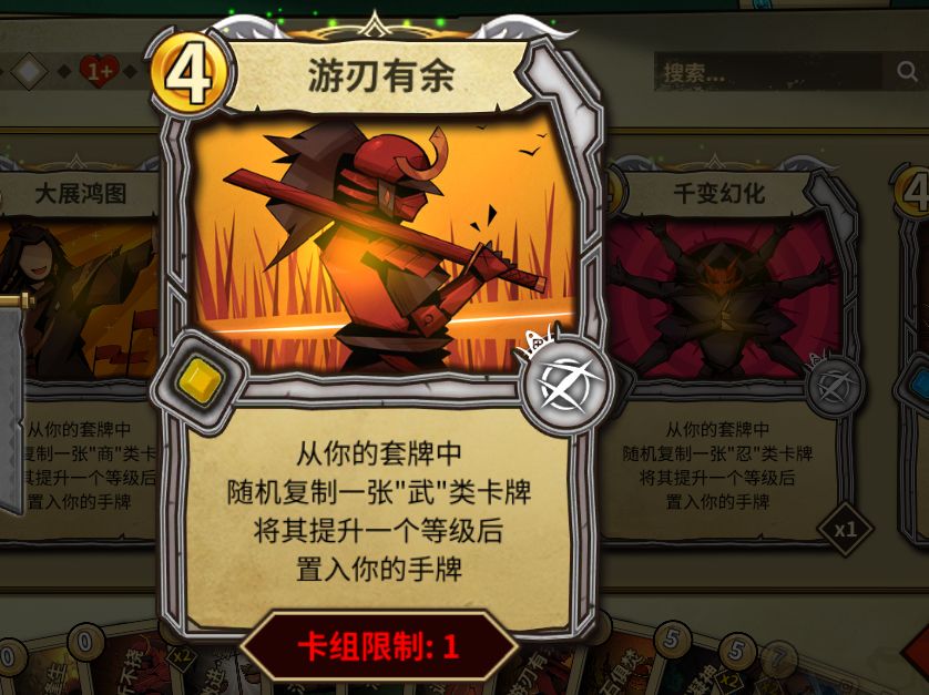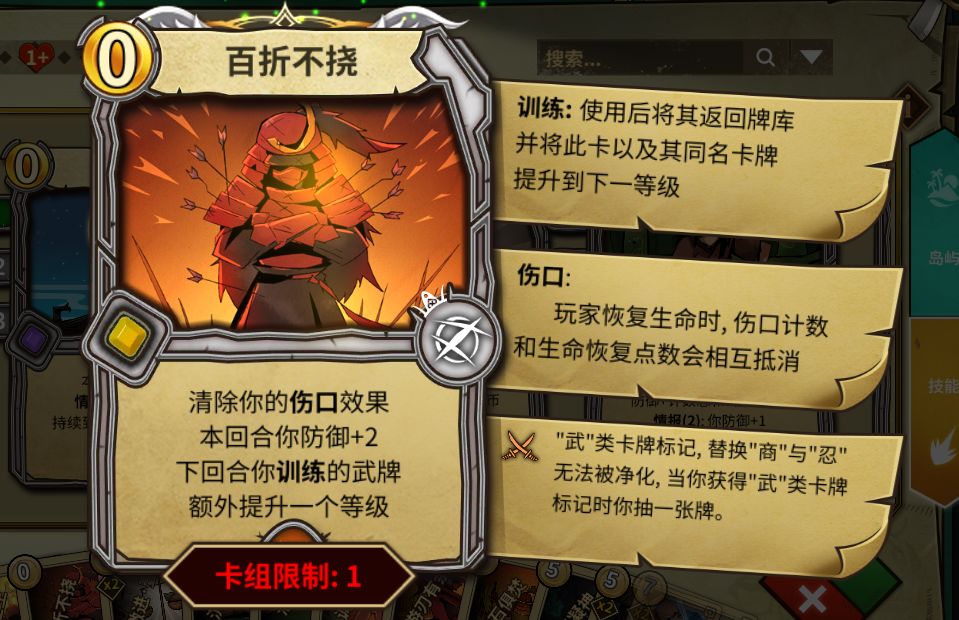 这个卡组就只有两张“武”牌,“百折不挠”和“立刀”