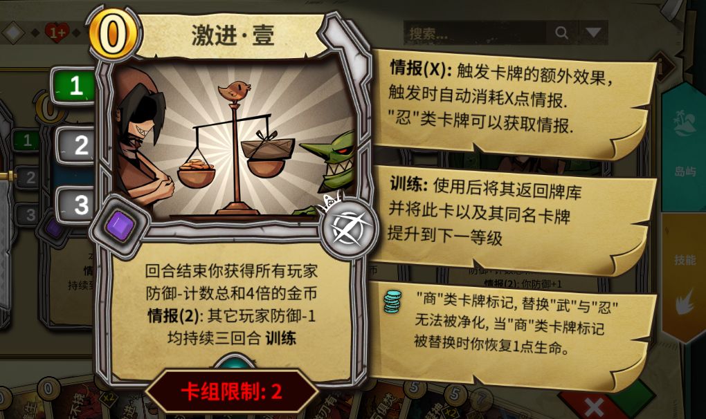 “潜伏”一般不用,在血量健康的情况下,先出防御+的卡牌,再出“沉稳”,再出“一往无前”,最后再出“潜伏”能达到最大金币收益,当然如果你想赌的话,也可以在“一往无前”之前出一张“激进”,达到理想收益。这种理想收益,是没有安全危机。