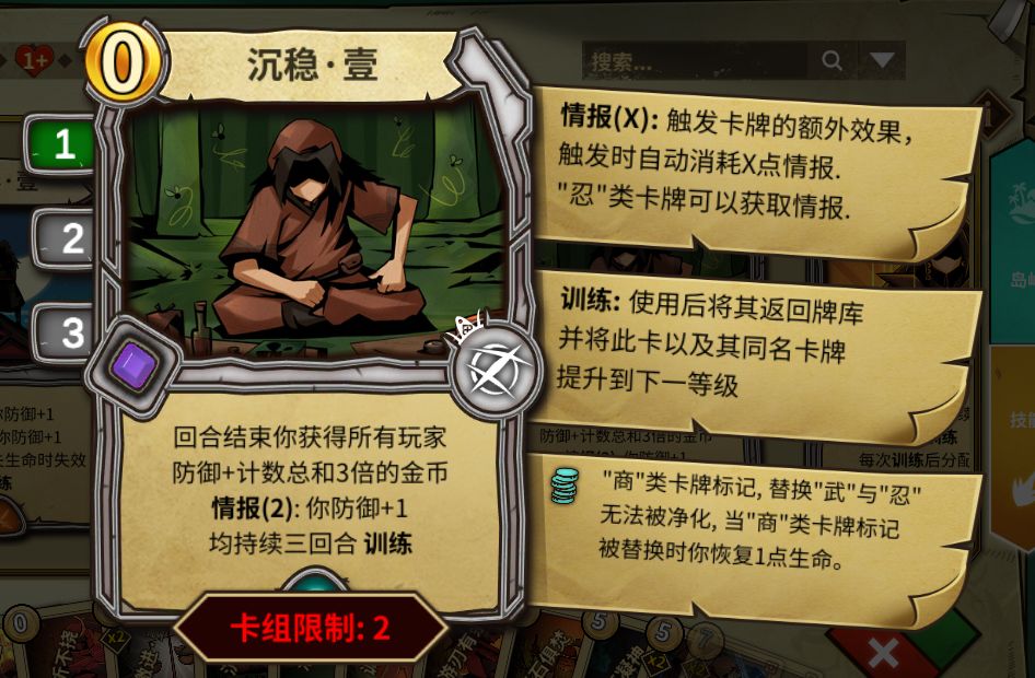 沉稳是前期赚钱的牌可以配合立刀使用,先出立刀后出沉稳,这里的前期是第一阶段的前几个回合。