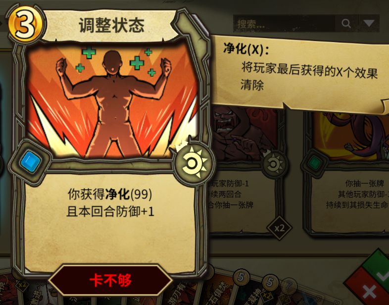 无敌和净化卡牌有很多,如“重获新生”“苟延残喘”耗费血量,其实在血量健康情况下,不建议用“重获新生”,在杀人局也不建议用,
