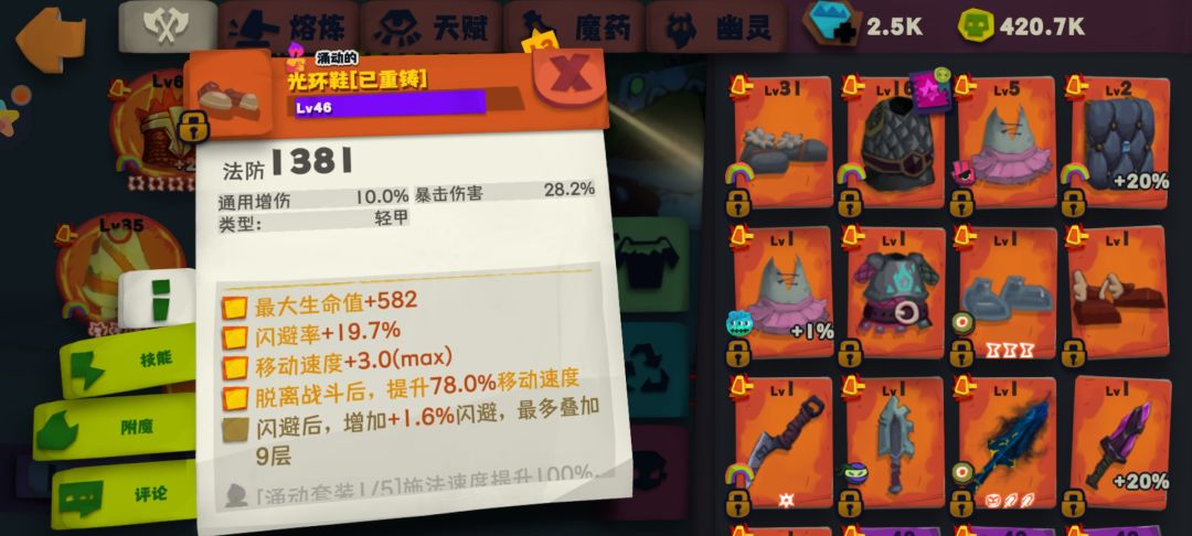 鞋子可以用二附魔突进。挂机就光环。蜘蛛用迷踪鞋,进入boss模块边框就要点,最好取消下自动寻路走过去,这样不会出小蜘蛛。