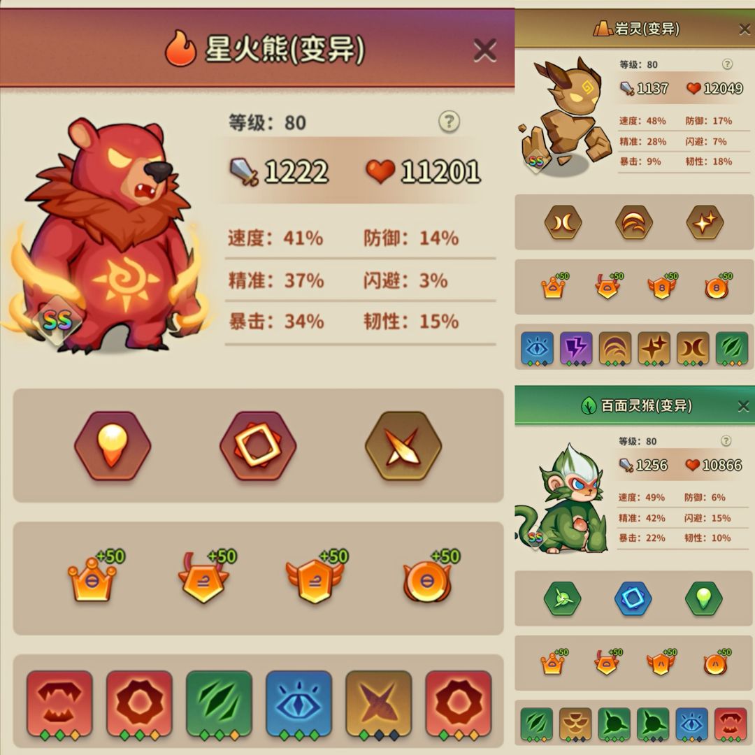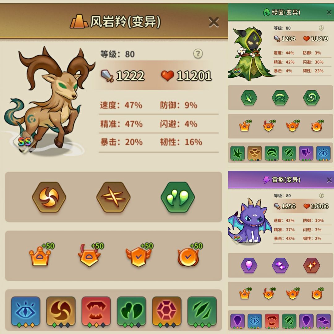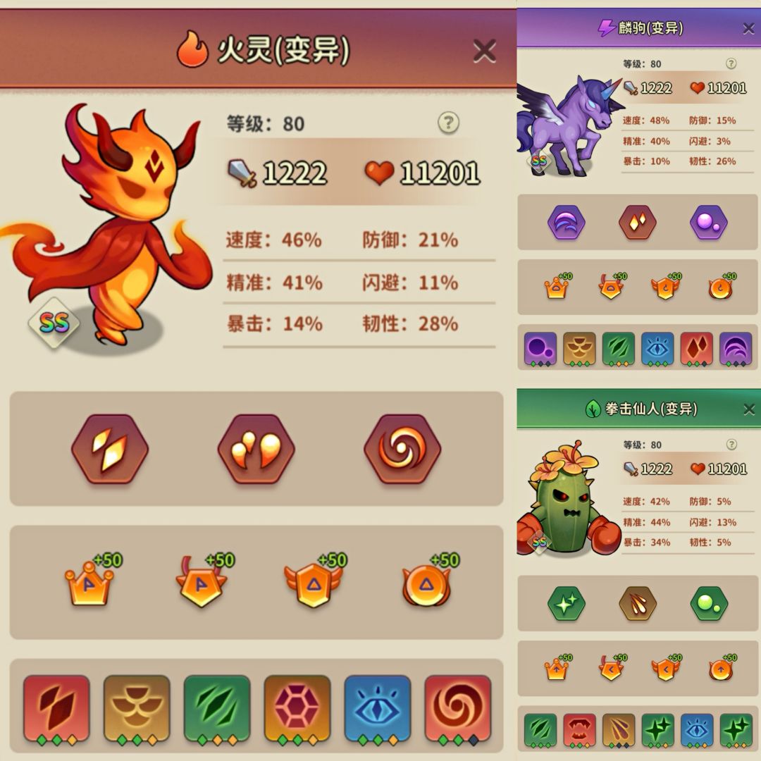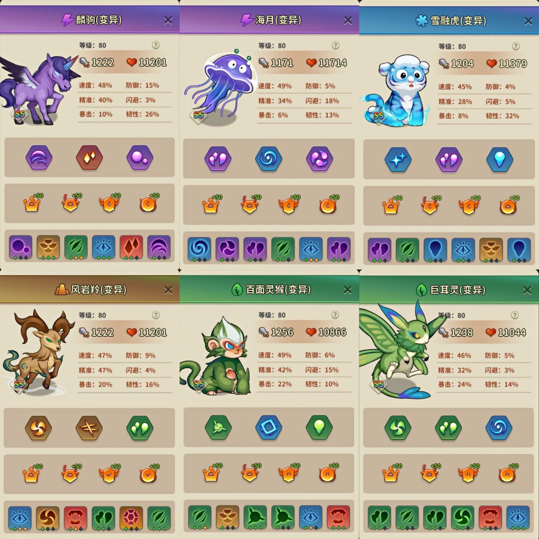 阵容中一速精灵可替换。鳞驹、海月、雪融虎、风岩羚、百面灵猴、巨耳灵(后两者需装备神树)皆可。