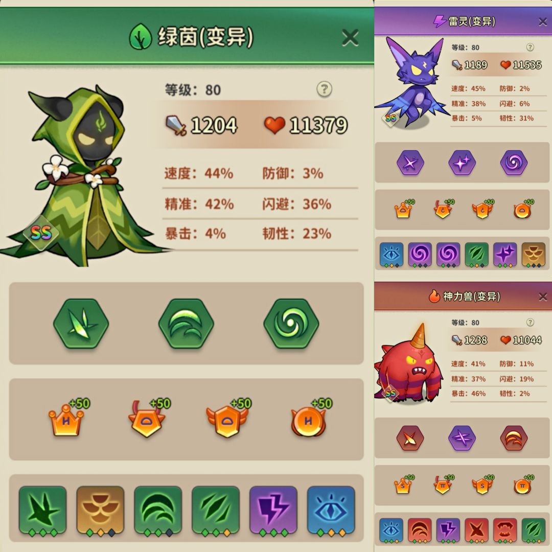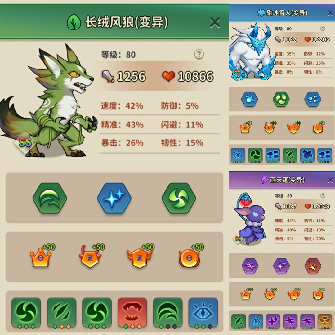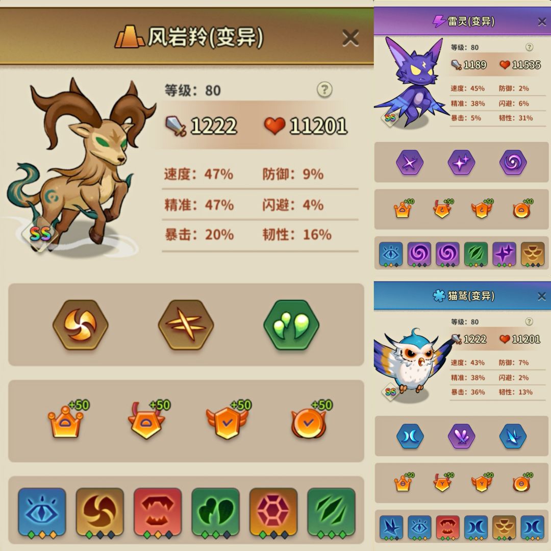 阵容中一速精灵可替换。鳞驹、海月、雪融虎、风岩羚、百面灵猴、巨耳灵(后两者需装备神树)皆可。