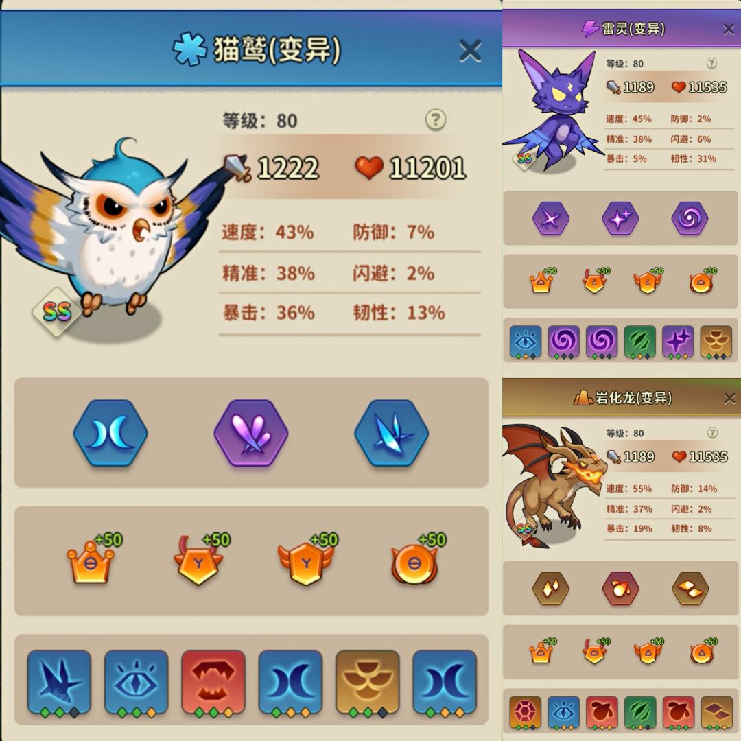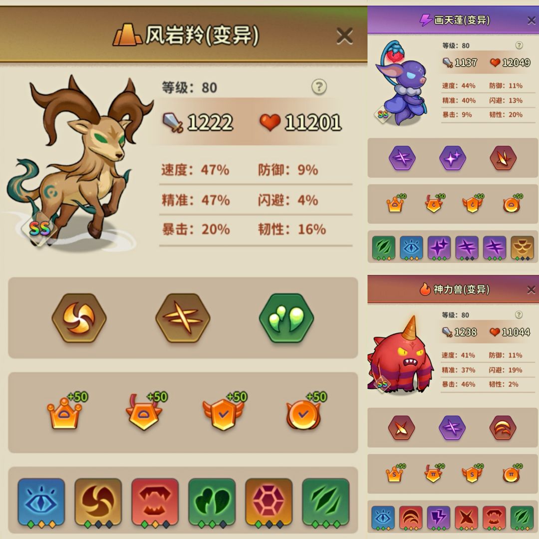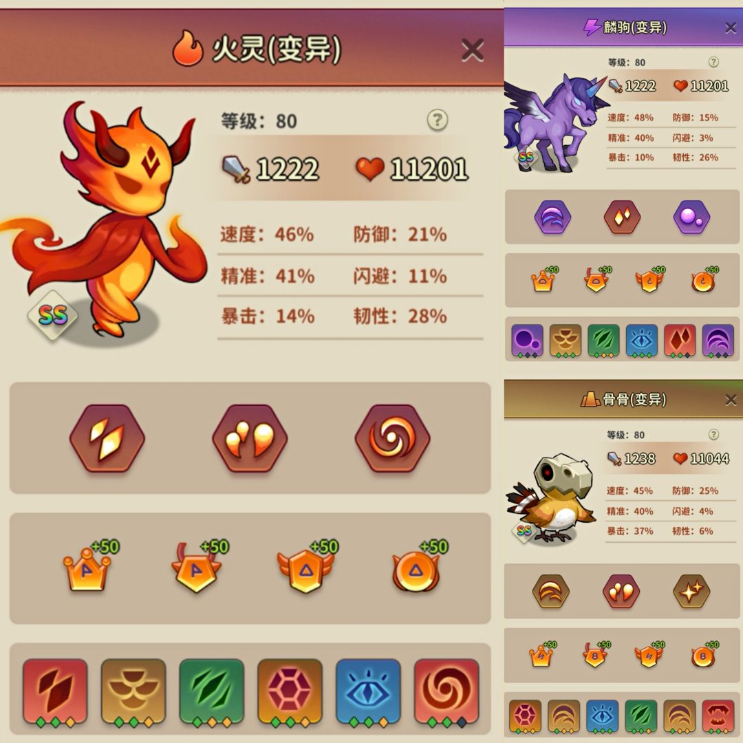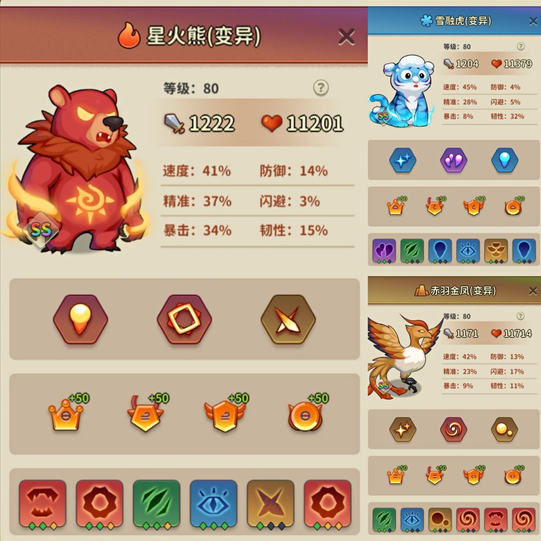 阵容中一速精灵可替换。鳞驹、海月、雪融虎、风岩羚、百面灵猴、巨耳灵(后两者需装备神树)皆可。