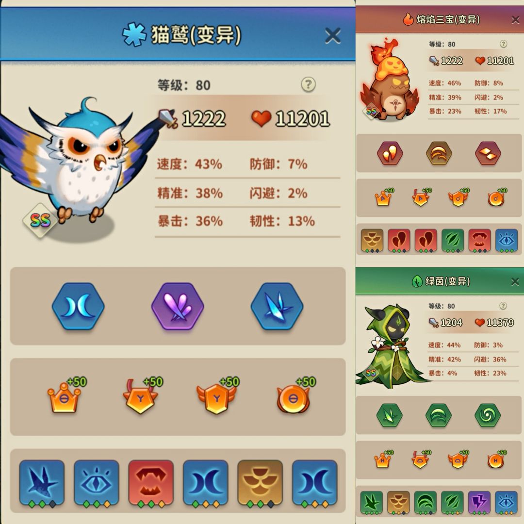 另外,因为火系装备“万火”的存在,使得燥炉、熔岩三宝都能附带抓取技能,搭配猫鹫再合适不过了。
