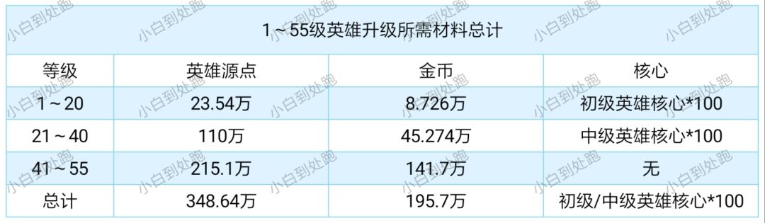 【萌新攻略】1~55级英雄升级所需英雄源点&金币详细统计