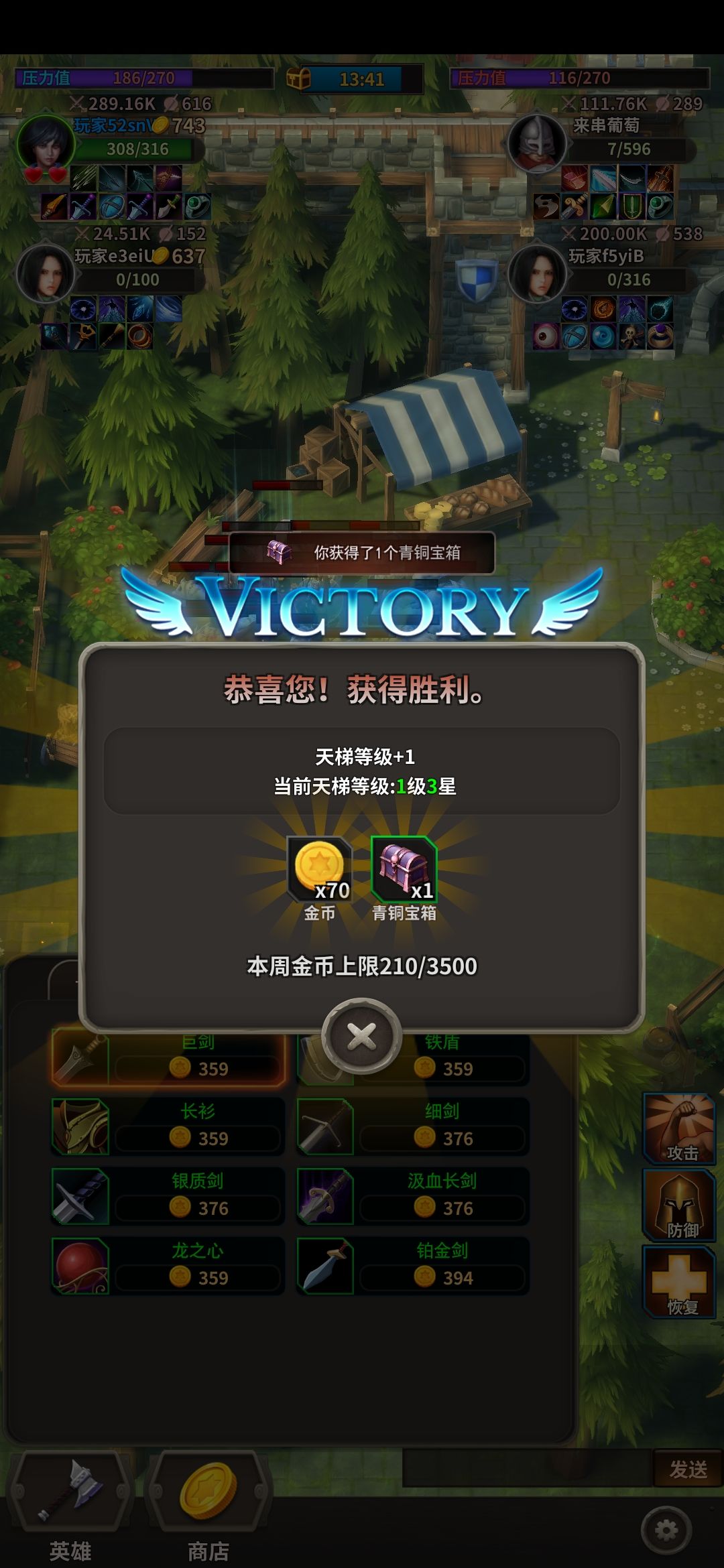 小编的吐槽:这队友绝了刚刚开始就死一次,看他直接憋了把五阶武器。四分钟之后就是我一个人挑对面的,压力值一直都是挺高的,看着就吓人。最后我好不容易赢了就给了一个青铜箱,上一把给我一个砖石箱,全是法师技能服了。对面也不给力十三分钟就撑不住了。