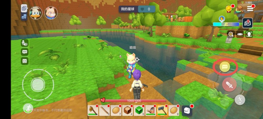 对准种植的土豆浇完水,成熟是需要时间的,别在这眼巴巴看着它成熟,虽然我也好奇哈哈哈,利用这个时间去河对面!!农田的河对岸站了一个“人”,这就是关键NPC,也可以说是大家的钓鱼启蒙导师!与她对话会解锁鱼竿,那“作为回报”我们就勉强掉两条鲫鱼送给她好了?