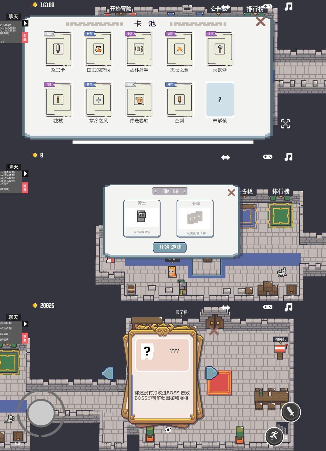 卡池、排行榜、开始游戏、公告、Boss图鉴,均已更新为第二版UI