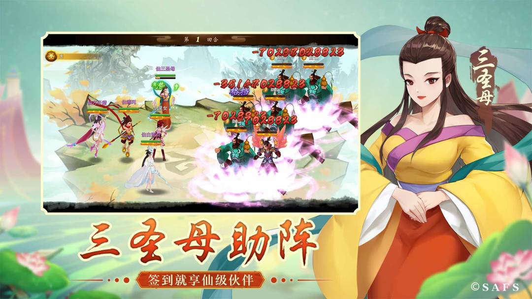 玩家签到即可领取伙伴三圣母,其拥有强大的AOE和免伤盾技能,完成活动任务还可免费领取三圣母皮肤痴爱成魔以及杨戬皮肤二郎真君。