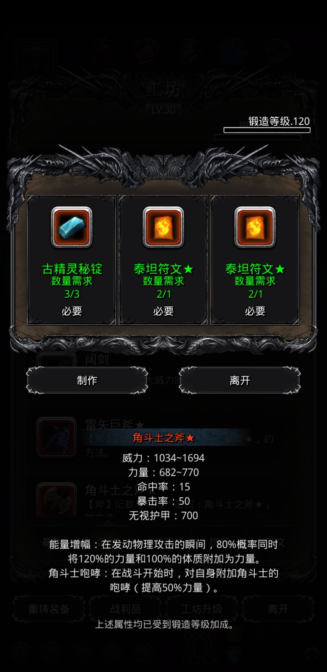 战利品为15.7力+14力。
