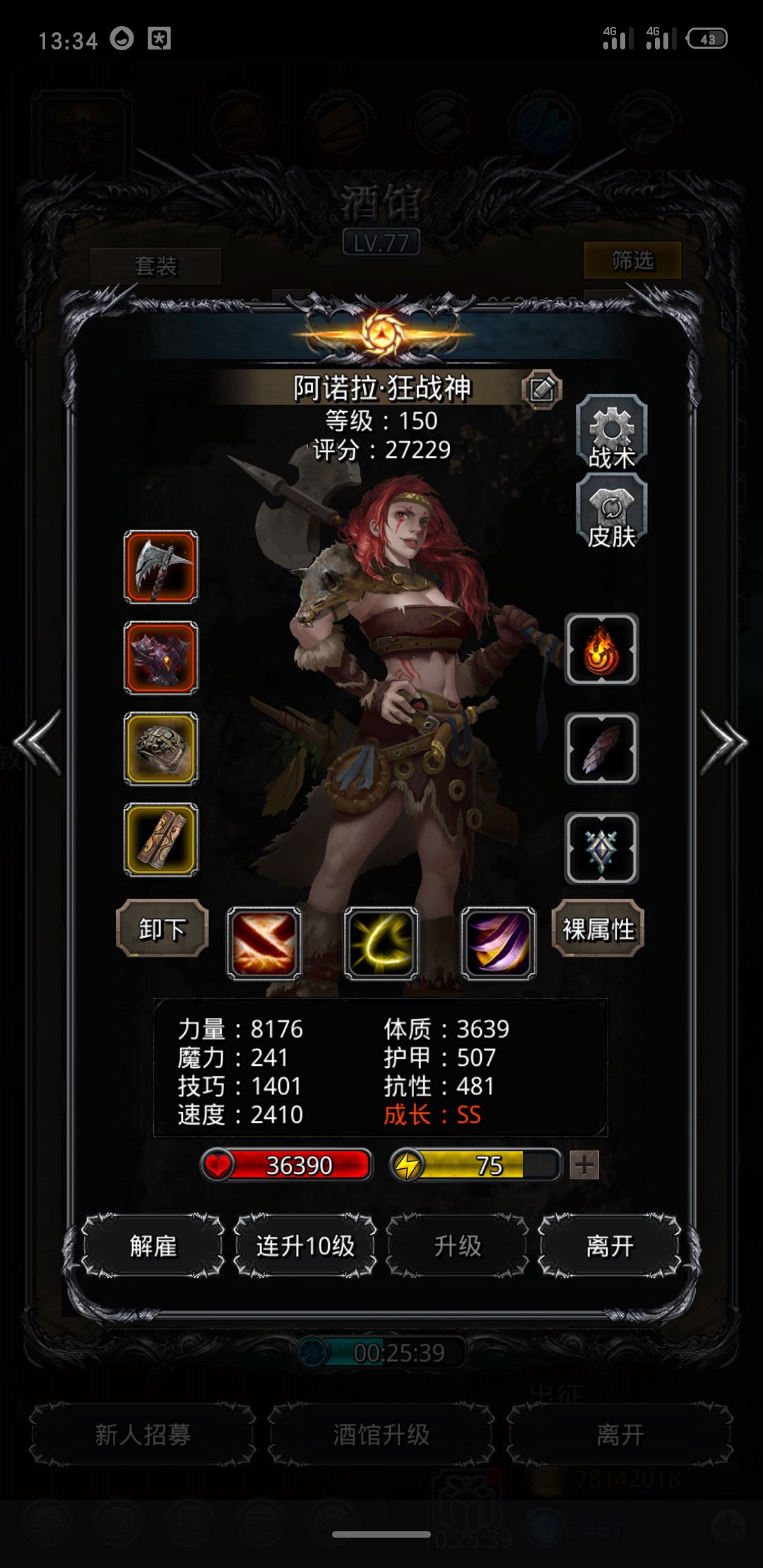狂战/传猎带单吸+力量/物伤。