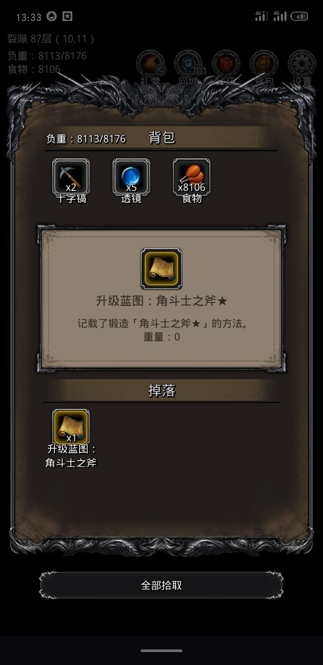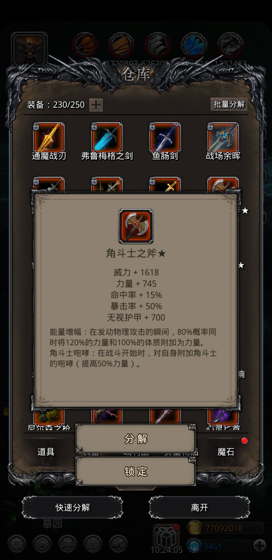 最后贴下我的新斧头截图,属性还不错。各位加油。