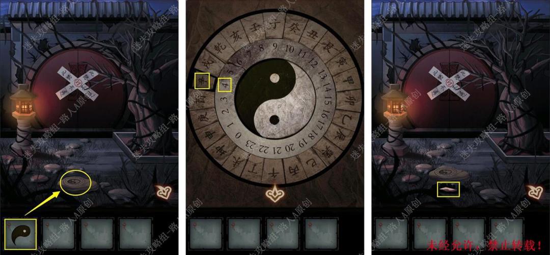 24.根据田字格和日晷盘的线索,将【黑色勾玉】放入圆盘,旋转数字【4】对应【辛】,再按下【辛】,解开机关,点击被掩埋的盒子。24.1
