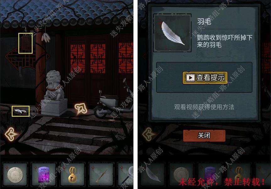 11.点击鸟笼,拾取掉落的【羽毛】。11.1