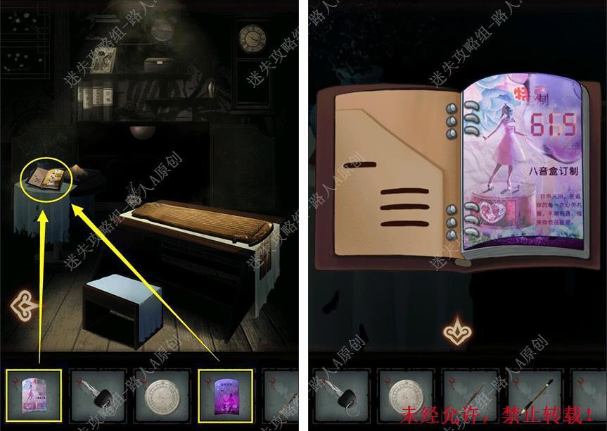 18.根据宣传册的线索,在八音盒输入密码【615】、【754】、【869】,得到【黑色勾玉】。18.1