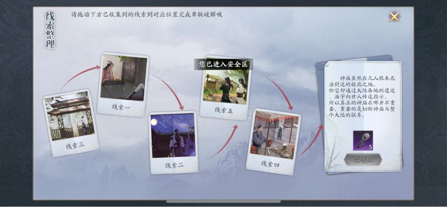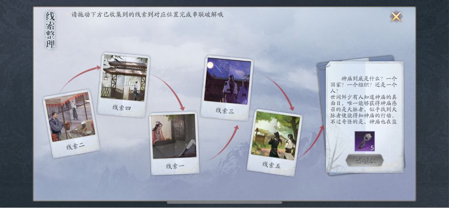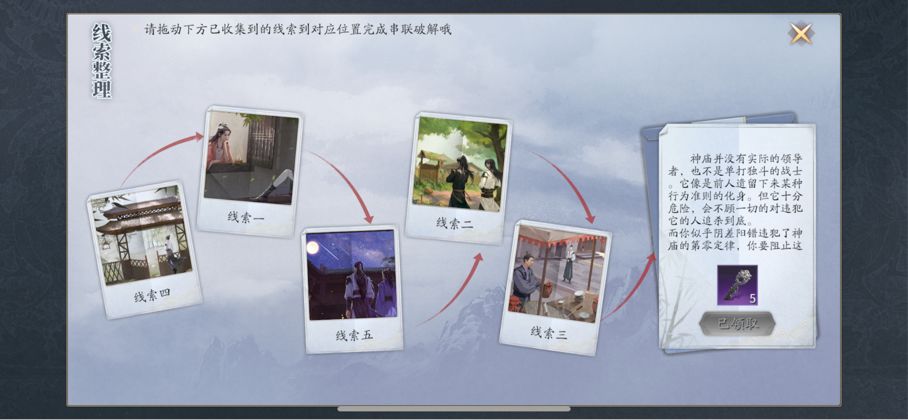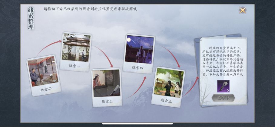 3、每收集五个线索后,便可以在线索总览中整理线索,解开重要的信息。