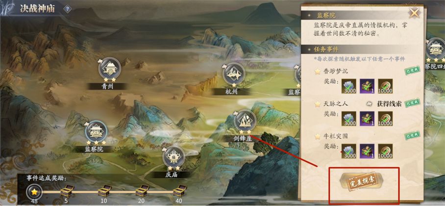 1、打开决战神庙主界面后,你可以在大地图上看到若干个“地点”,而这些地点里又包含着若干事件。