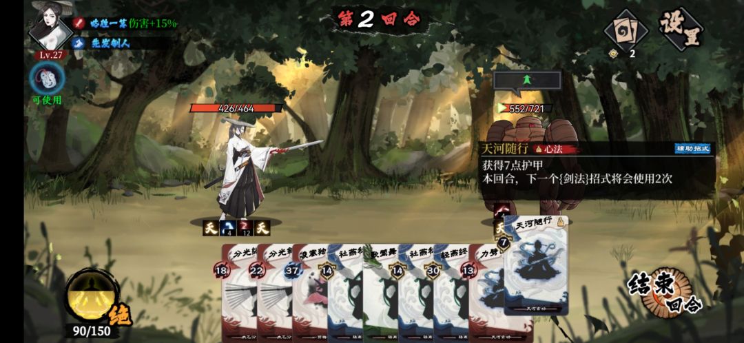 2、天河随行,说明效果为下一式如为剑招,触发两次,实际效果为三节棍意,下一式为棍招,触发两次(剑客没有棍招,未验证能否触发)