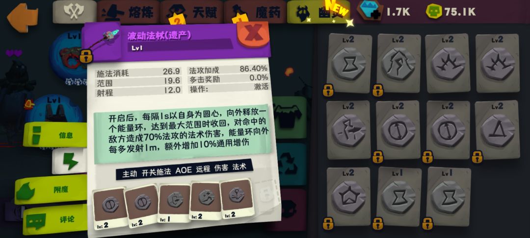 符文方面优先保证武器带一个击中回蓝可以用来站撸BOSS,之后广域堆范围,因为波动遗产机制为能量环发射越远伤害越高。点过辐射通常加两个广域范围就差不多满了,剩下161以后伤害感觉乏力可以补个击穿,其次智慧。