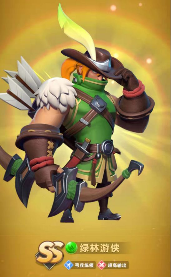 绿林游侠在三消战斗中有着极其出色的表现,运用得当可以挡下敌方的一轮技能爆发,他的碎片主要来源是召唤阵,升阶的难度不小,SS万能碎片的使用,还是根据领主们军团兵种来衡量,如果领主们在军团阵容上倾向于弓兵,那便可以毫不犹豫将其设置为第一梯队,当作主力培养和升阶。