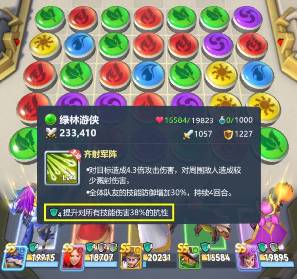 绿林游侠的定位是输出+辅助,输出能力中规中矩,但他是目前唯一能增加技能抗性的SS英雄。本身他的阵容适用性就比较广,与水系的常胜之龙搭配可将队伍坦度优势发挥到最大,再配合少年祭司持久力十足。