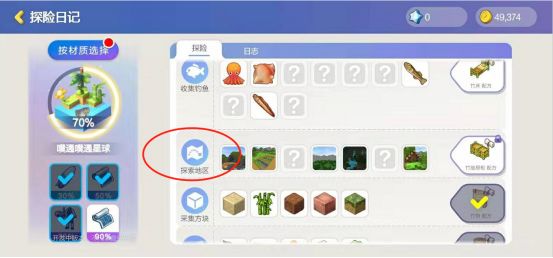 隐藏玩法一:除了家园星球外,探索不同的外部星球也是游戏的重要组成部分。在外部星球上进行采集方块、采集作物、探索地区等行动都能解锁不同的奖励,而这些行动中当属探索地区的行动难度最大。也正因为其难度太大,所以探索地区很容易成为玩家们忽略的隐藏玩法。