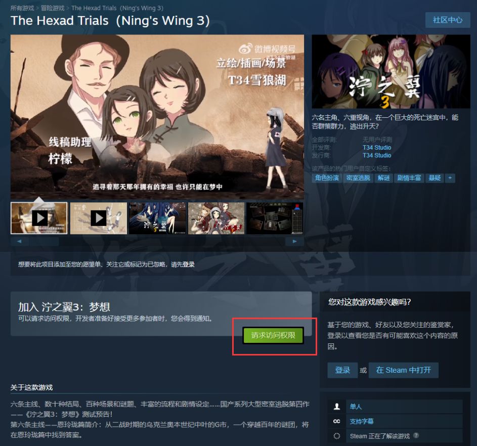 【公告】大型密室逃脱《泞之翼3》PC端测试版已在steam平台上架!