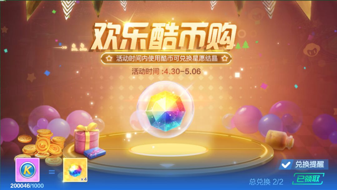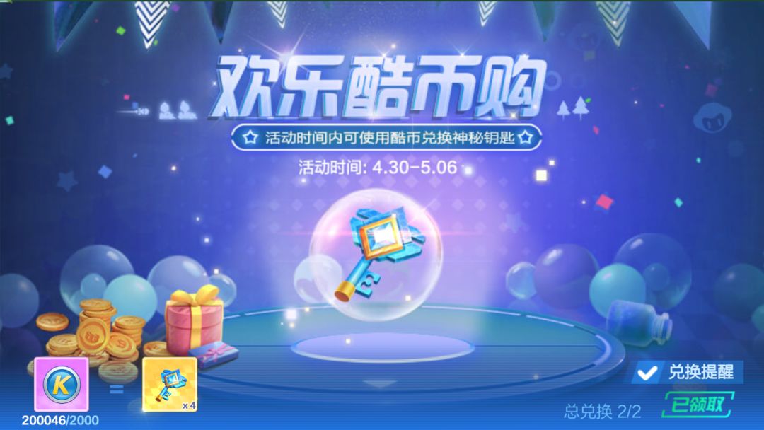 活动期间,车友们可以在活动界面使用酷币兑换珍贵道具:2000酷币兑换神秘钥匙*4、1000酷币兑换星愿结晶*4。每种道具每人最多可以兑换两次,共可兑换神秘钥匙*8、星愿结晶*8~
