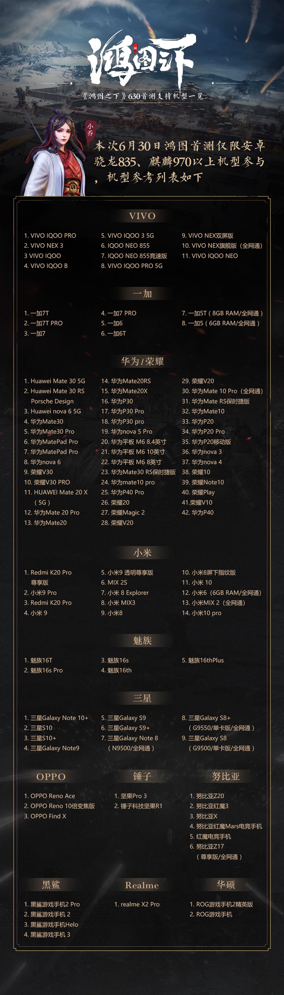 PS:由于采用了UE4引擎打造,为保证大家的体验效果,本次测试优先推荐处理器为骁龙835,麒麟970以上的安卓机型,关于适配更多的机型,让大家都能体验上鸿图,程序员们也正在加班加点的优化。秃秃保证在后续的测试中,会逐步开放更多机型,请主公再耐心等等我们噢~
