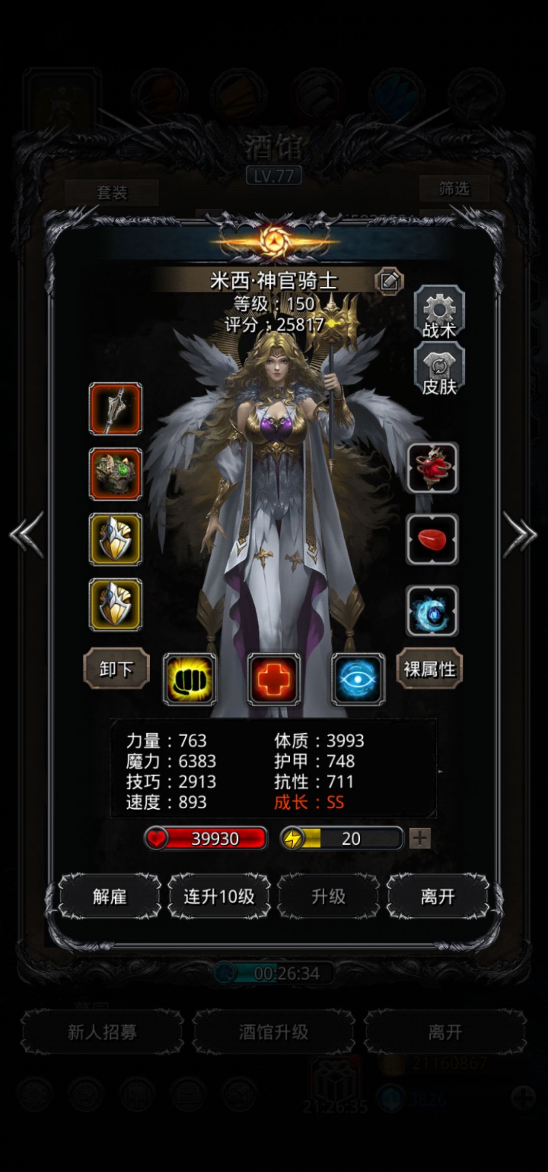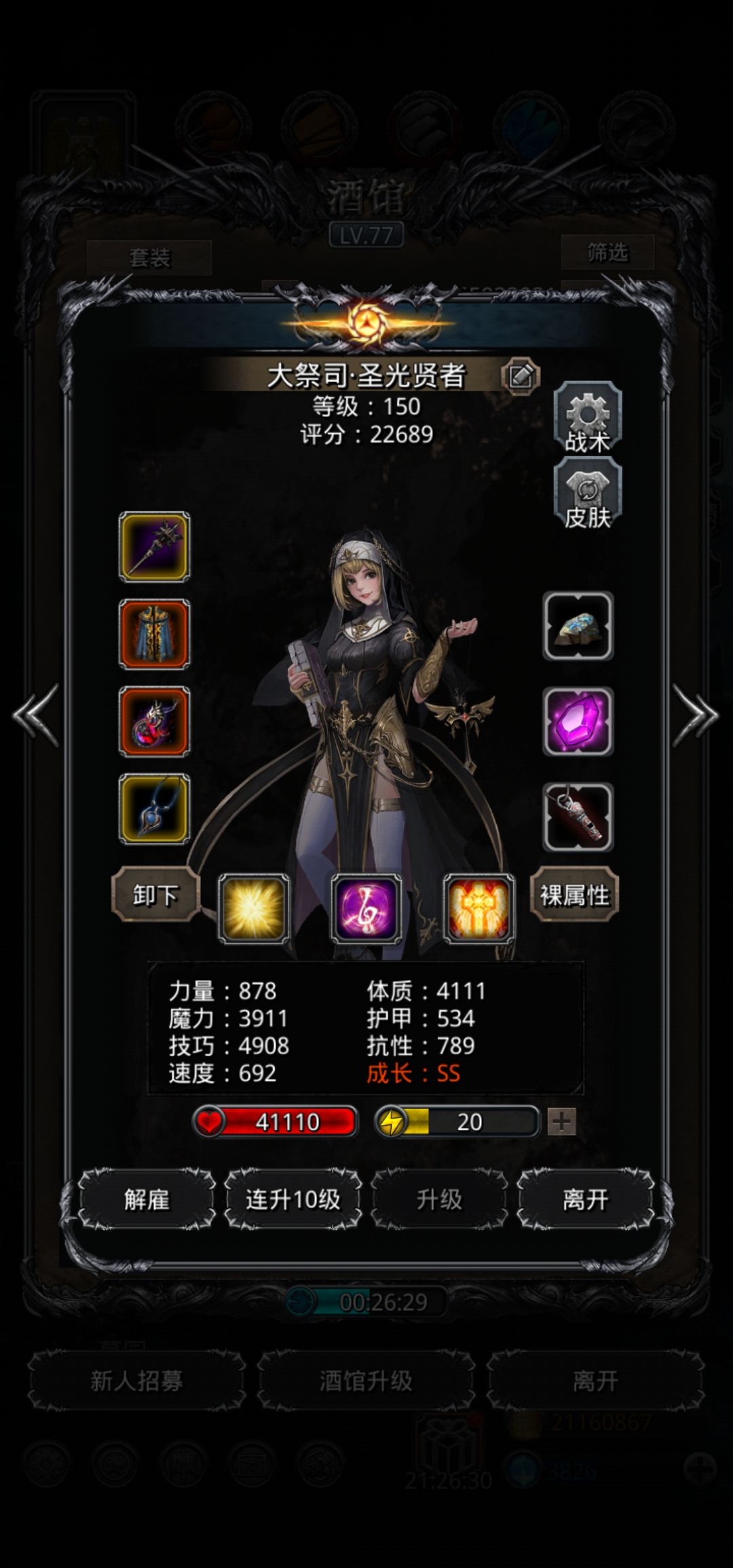 神官主魔力,技能48自己80队友。