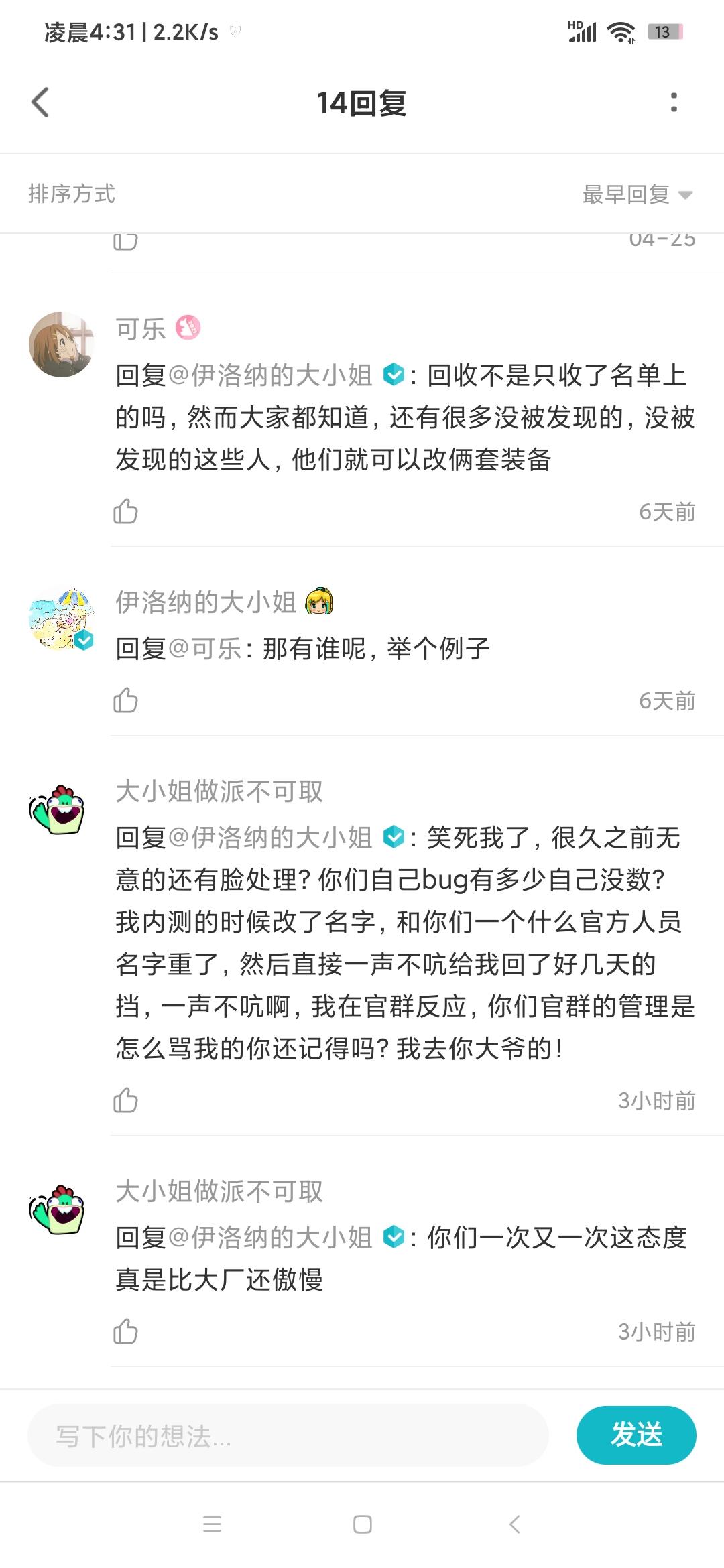 从截图可以看出来,首先是嘴硬,你大小姐但凡知道顺着玩家说,你就说句“程序员技术不够”,也没人骂你。可你呢,偏要说全部都处理了,谁信啊,黑星复制的bug可以说一直就有,你能处理怎么到现在才处理?