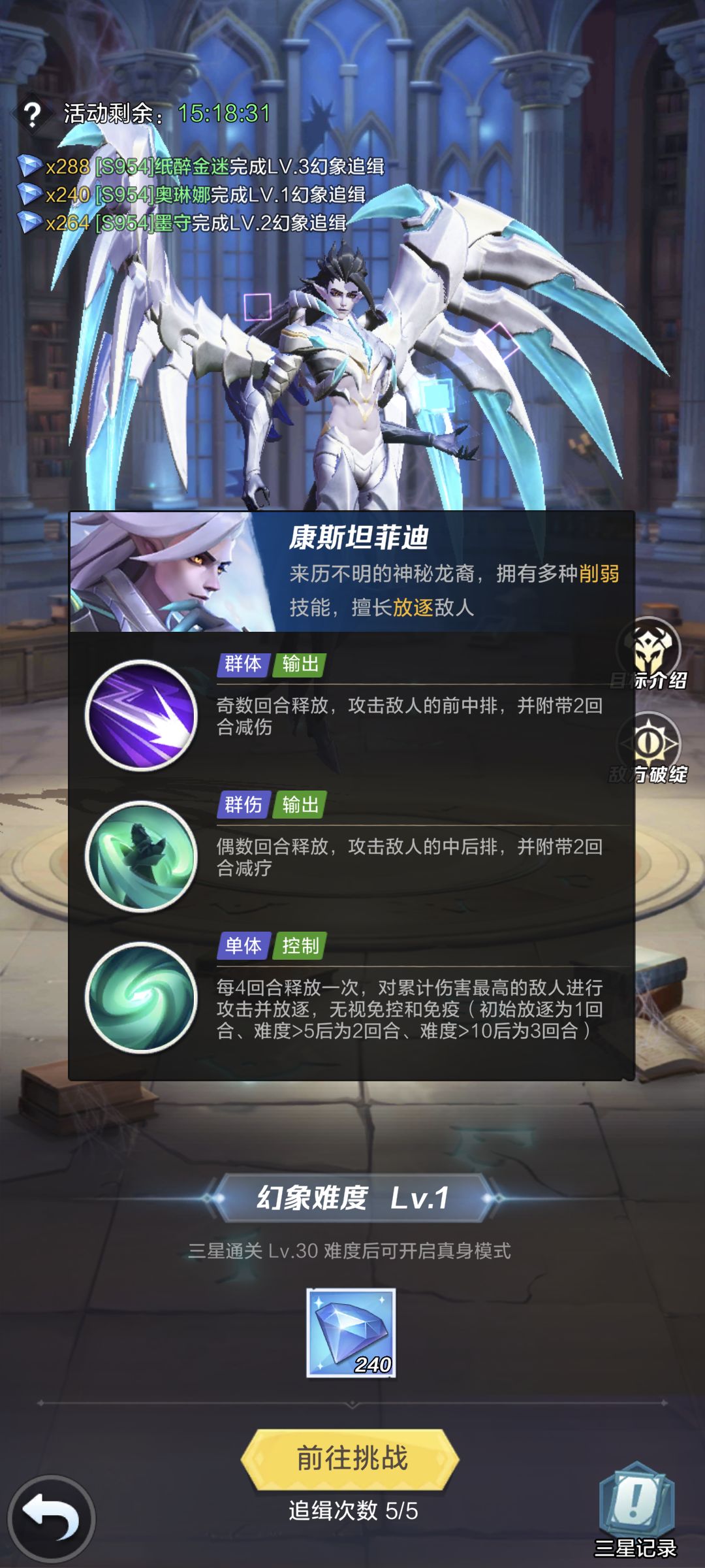 输出放在后排不要被减伤,盾放在中排因为挨打次数最多(扛得住话输出放中排也可以,被打回怒)。boss伤害中等,考验输出能力,我都是15回合内输出不够没打死所以三星不了。各层之间奖励差距没有很大。