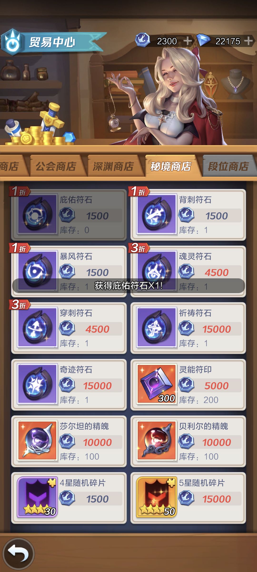 深渊商店买了个庇护符石给冰盾,后面给最低速的用防一防对面名伶也有用。