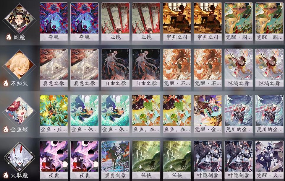 阎魔依旧能玩,可惜配合式神分立各个卡包,她本身不需要SSR,金鱼姬、不知火需要,因为上场率非常高,特别给篇幅。
