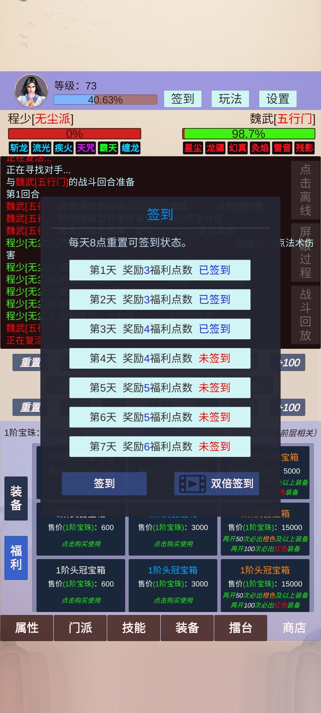 看完5个广告,签到得福利点。礼包兑换码:(666666)(rmxy666)