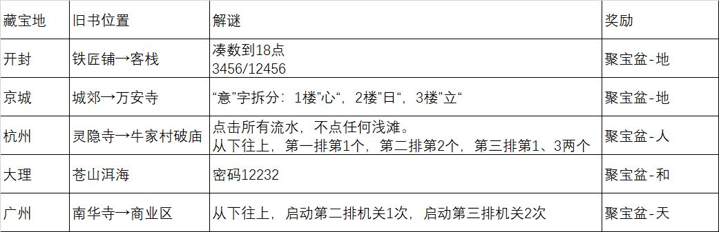 在每个主城获得两次旧书后,激活城外周边的藏宝地,解谜获得聚宝盆