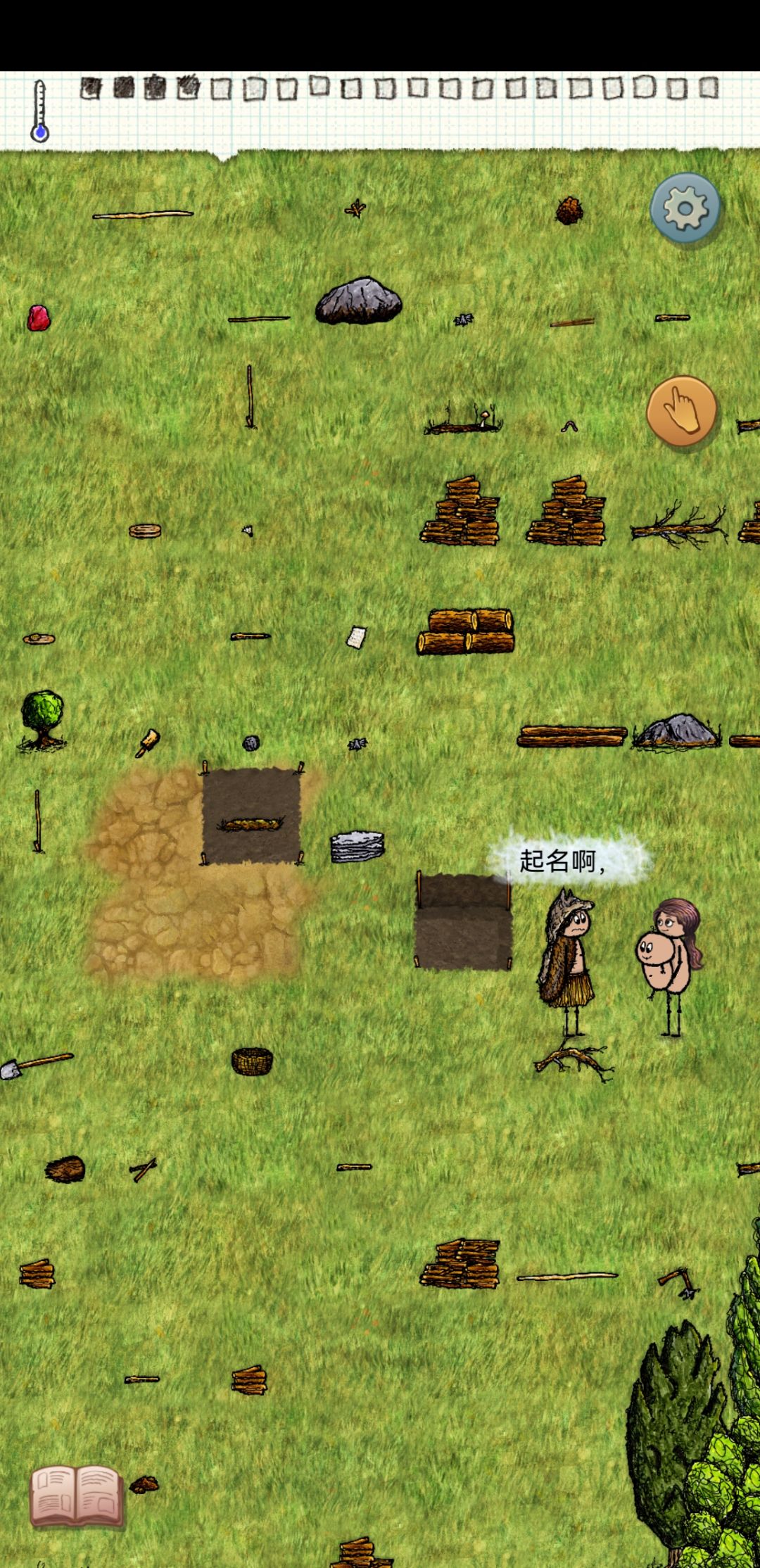 咱就是说 咱生的熊孩子都告诉我会埋人 结果我看了半天 没有一个给我放扁石的 究竟是跟谁学的埋人呜呜呜 后来看到另一个孩子走到这里驻足了一会儿 然后去拿了一块扁石 我还以为要给我放上去 激动得很啊 结果抱着扁石跑去研究打铁了 哭死我了