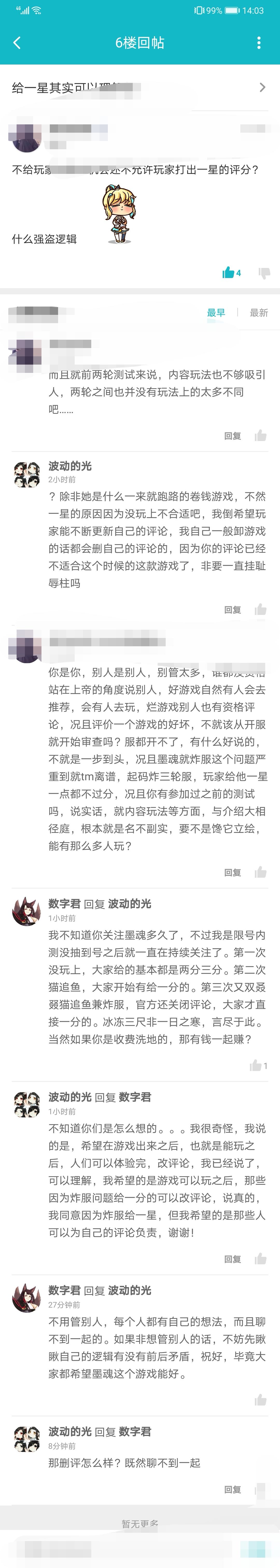 然后看到她主页别的不少高分游戏都给的很低,却在这里没逻辑的折腾墨魂,我就举报了“疑似水军”。