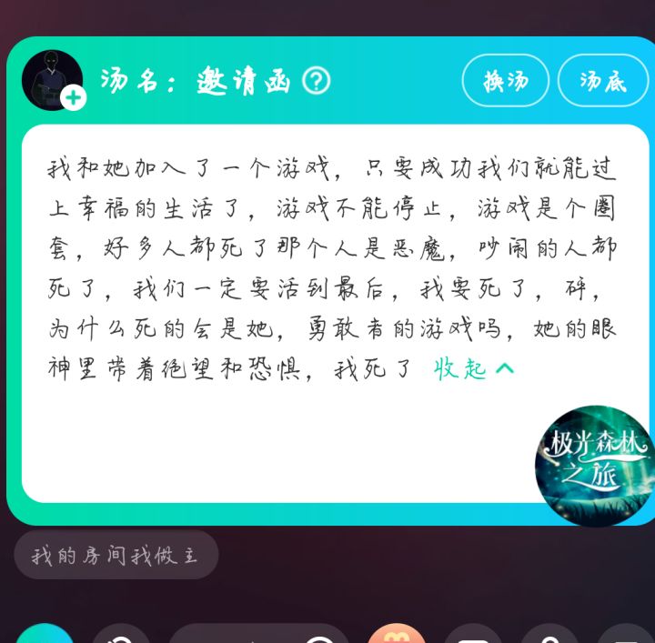 🥀现在来说一下游戏的玩法。海龟汤呢是一个情景还原类的游戏,你们可以向房主提出线索或者自己的疑问。房主通过海龟汤的汤底来回答是或者不是或者不重要。
