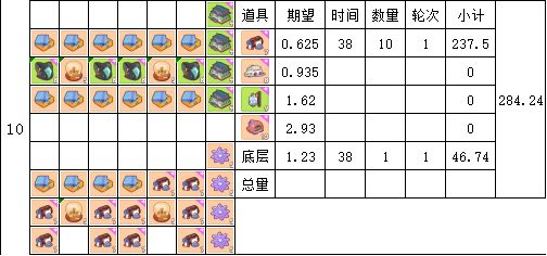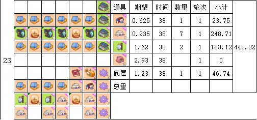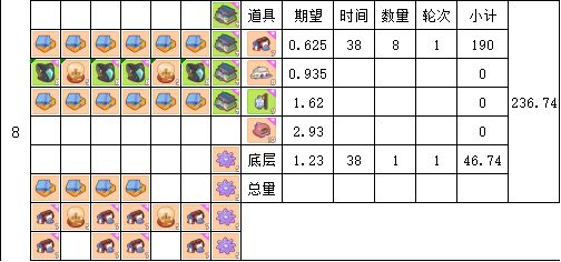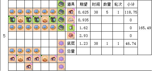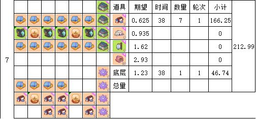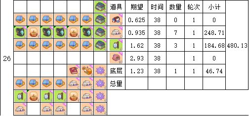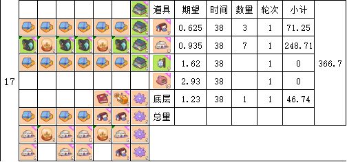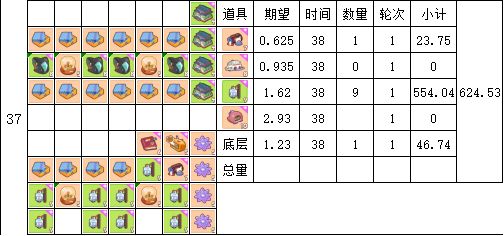 时间单位为38分钟(4轮16张卡片产出时间)