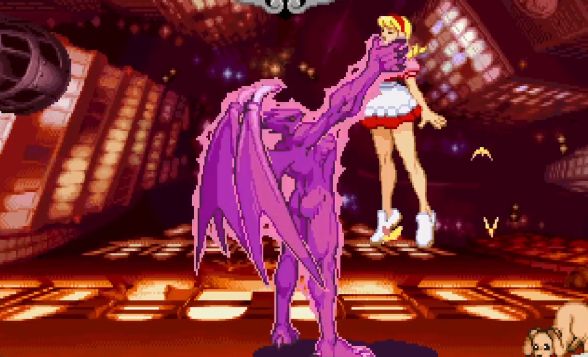 其实陈国汉的这招只是一个引子,毕竟拳皇人气高,大家想不知道都难,可相比之下,《恶魔战士》的知名度就小的多了,但里面迪米特利的“黑暗喜悦”一招,知名度却丝毫不熟前者.只因为在他的这招铁手之下,只要被抓住就立刻会变成一个没有战斗能力的美娇娘,而娘化后的形象还会保留原角色的部分特征。