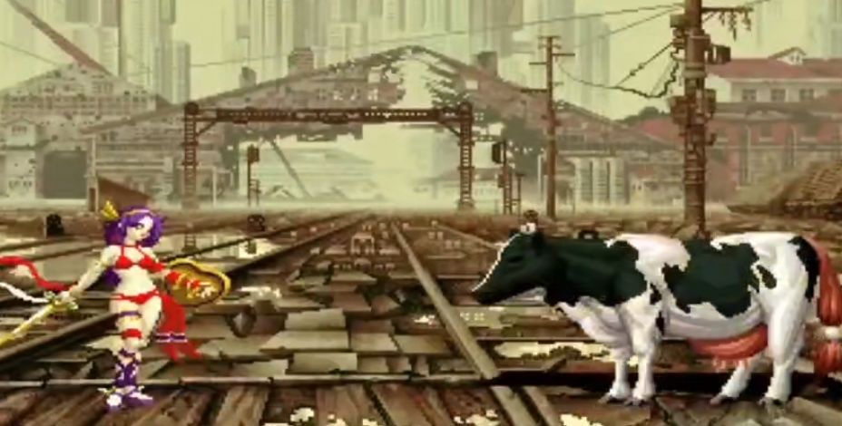 而在SVC里,还有一个人物必杀更是离谱,那就是雅典娜。这款游戏似乎就是专门为她设计的,在被她打败后,对手还会直接变成一只动物!而且这些动物每个角色都有专属的对应,比如大家最关心的不知火舞,就会在战败后变成一只奶牛。