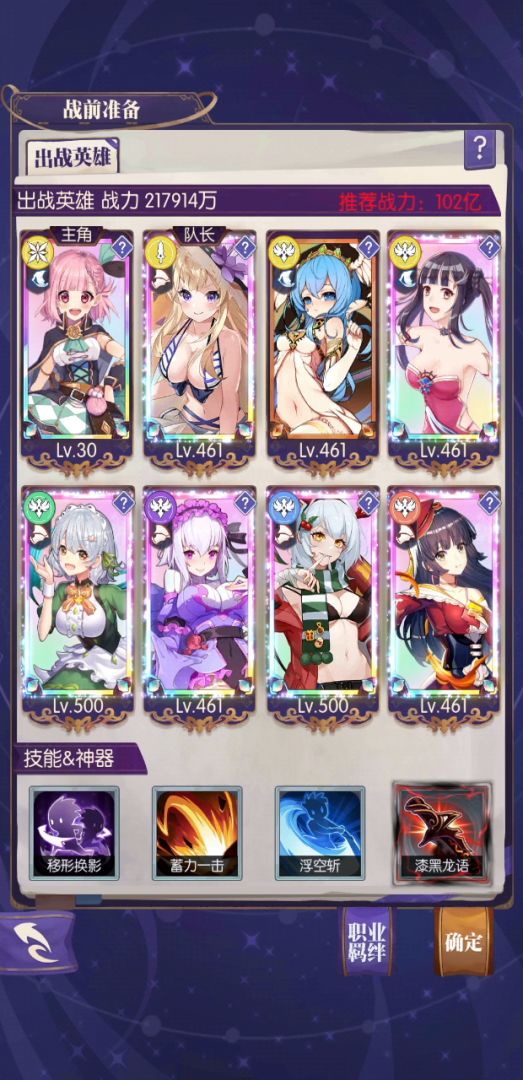 第五关使用圣希主c带6个挂件,没啥好说的。只要圣希能上的关卡,难度自动下降一个等级。这里需要点出一个副c协助清理小怪,我选的莉莉丝。可以当队长,在对boss的时候同属性不会被克制,提升生存能力。第一个boss在读暴雪可以用蓄力卡掉。平A也不痛,圣希可以回复的过来。关底boss注意尽量主角对着boss让圣希在boss背后输出,可以使用蓄力和换位来调整位置,多试几把就过了。
