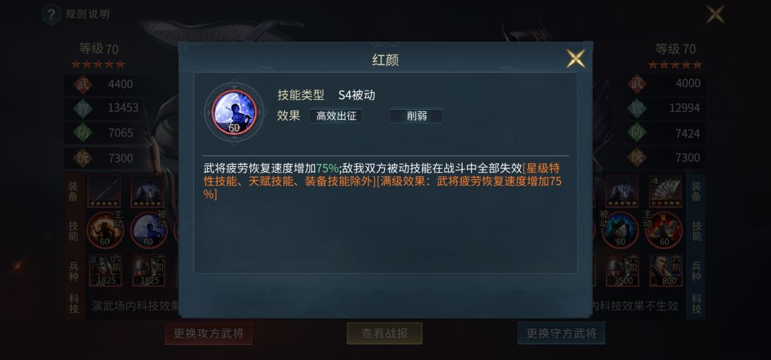 刘烨最为最受欢迎的小额将,刚出来的时候用来打典韦项羽不要太舒服,s3还没有止疗技能的时候,刘烨简直是无赖的存在,超高的统御加上超强的回复,竞技场都形成了一打五的局面,目前在都不带副将的情况下,刘烨单凭自身属性,统御就可以达到12000+,为当前最高兵力。