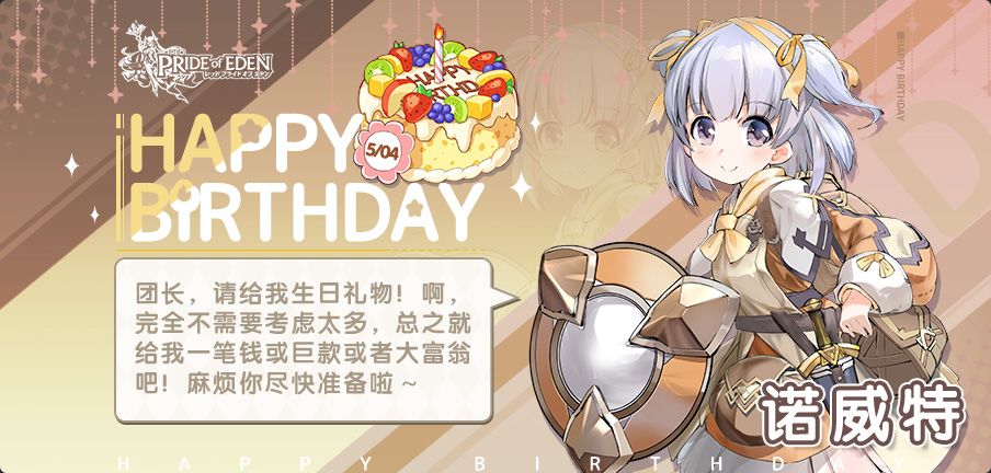 也请Leader明天登录游戏查收诺威特的生日礼:绑定钻石*50