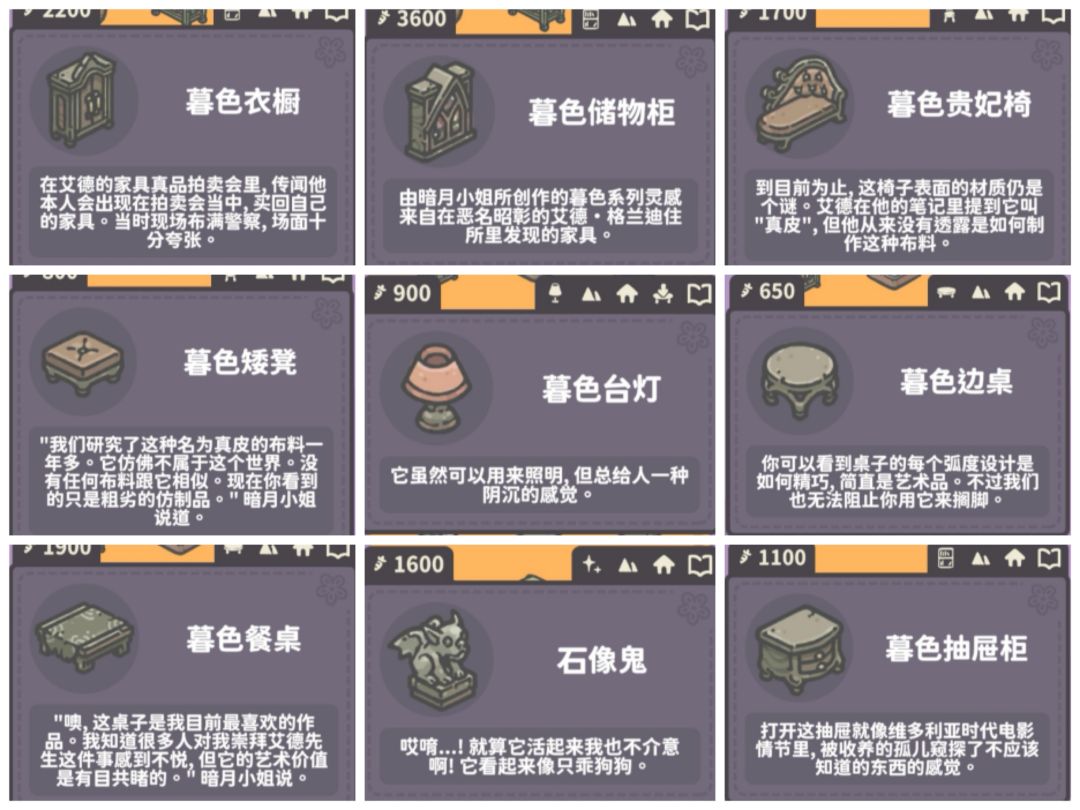 家具奖励里的暮色不是全套。