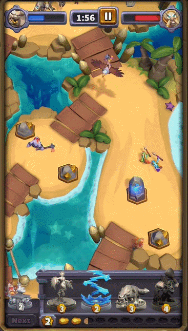 在战斗中,玩家们需要运用策略在战场上部署迷你战士们,随着时间流逝收集金币,或者通过采矿和开启宝箱找到财宝。