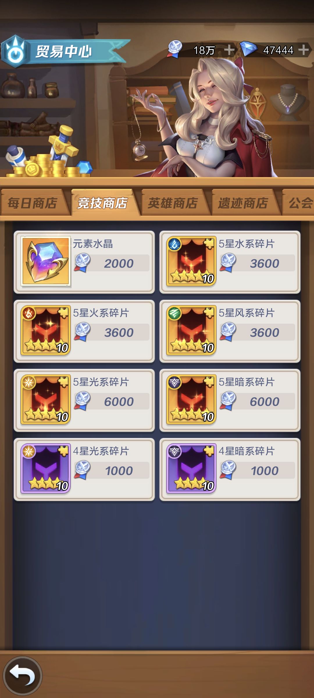 竞技商店:只换元素水晶,稳定来源,竞技场冠军赛排名越高代币越多