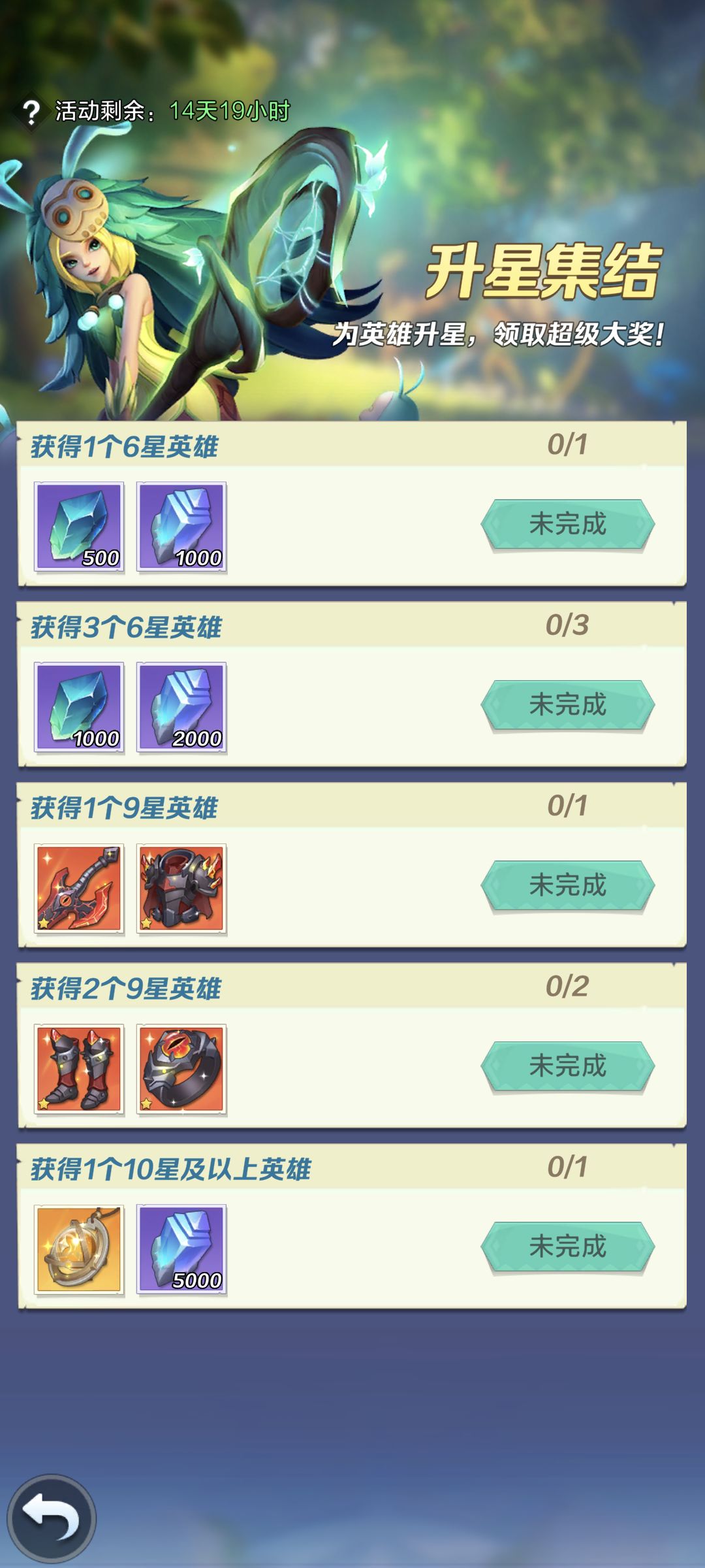 言归正传,开服第七天开启了为期十五天的升星集结,没听人提起过我还以为这个活动已经没了。看一眼奖励,确实是可有可无的一个活动,没有关键性的道具。还好龙脊之塔没买红色装备礼包,这里直接白给。